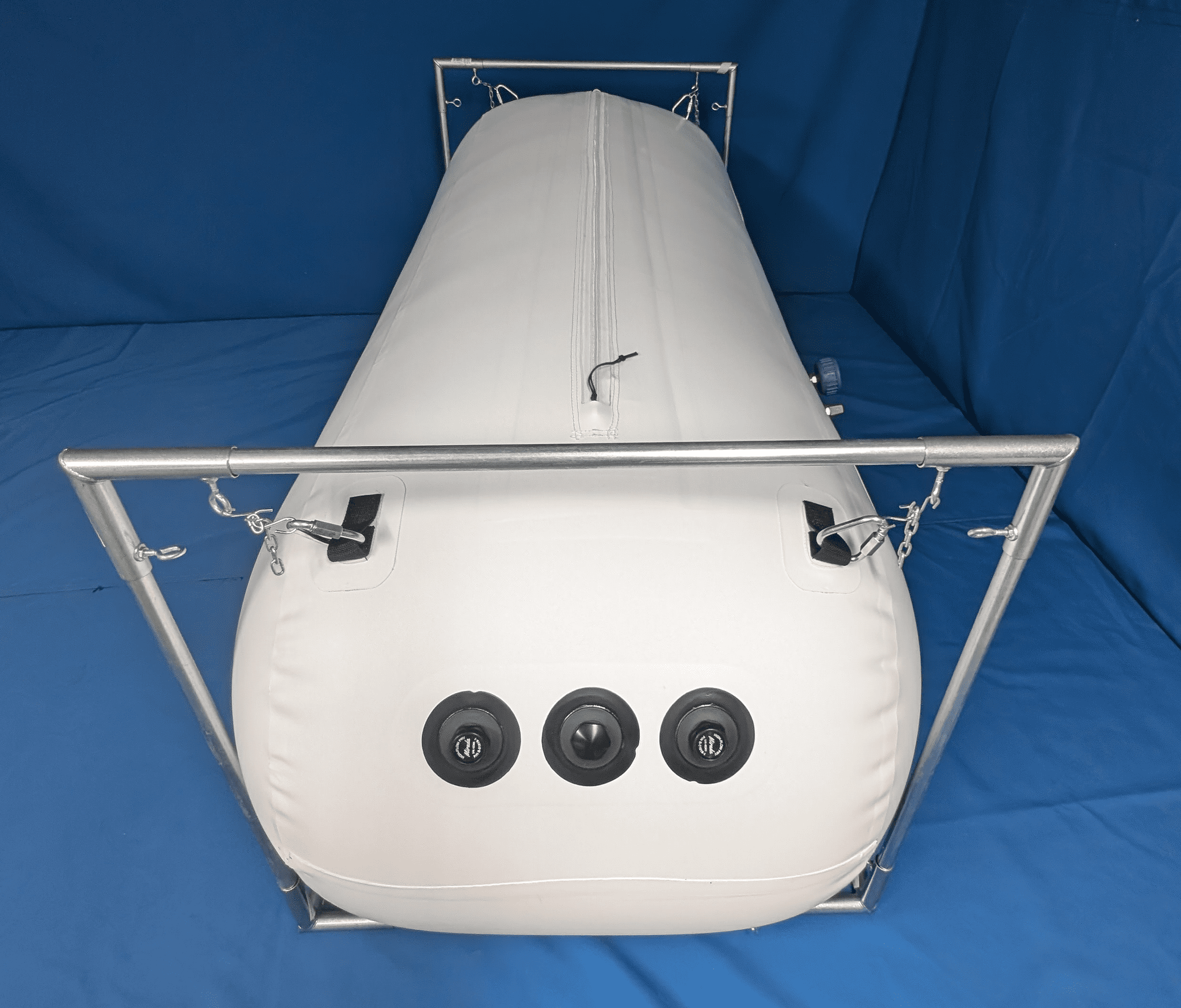 Built with durability and performance in mind, the chamber features an advanced triple-zipper system with dual airtight safety zippers that never need lubrication. A reinforced steel frame ensures structural integrity without extra stabilizers. The chamber runs quietly thanks to a powerful, cool-running compressor, and it includes a deluxe 4″ contoured mattress for added comfort.