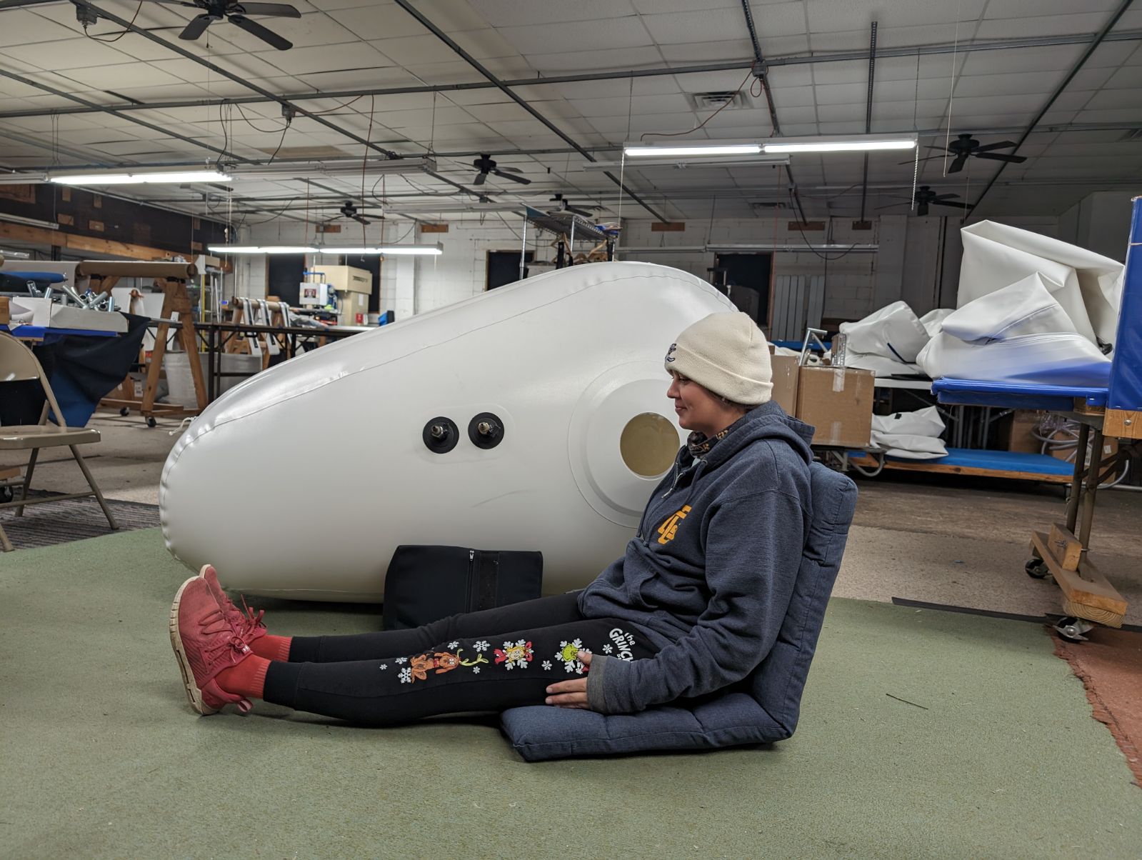 The Newtowne Shoe Hyperbaric Chamber is a compact, triangular-shaped mild hyperbaric oxygen chamber designed for users who prefer to sit upright during sessions. With an interior height of 42″, this chamber accommodates users up to 5’10” for seated therapy and up to 5′ 5 ” for those who prefer to lie flat. Its versatile shape and footprint make it ideal for small spaces without sacrificing comfort or functionality.