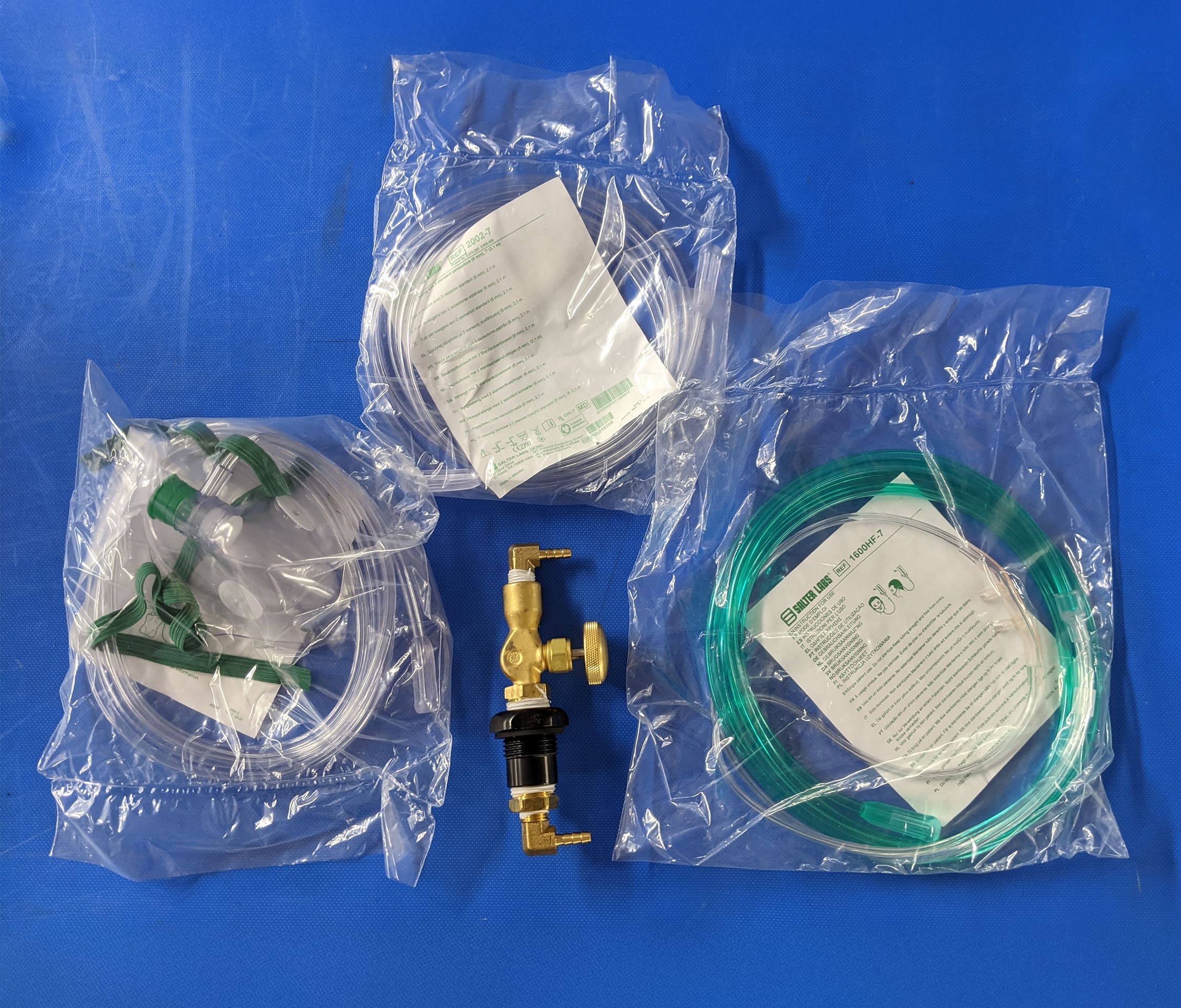 This bundle consists of a heavy-duty brass valve for an oxygen concentrator, an oxygen hose, an adult mask, and an adult cannula. Only available with purchase of a chamber.