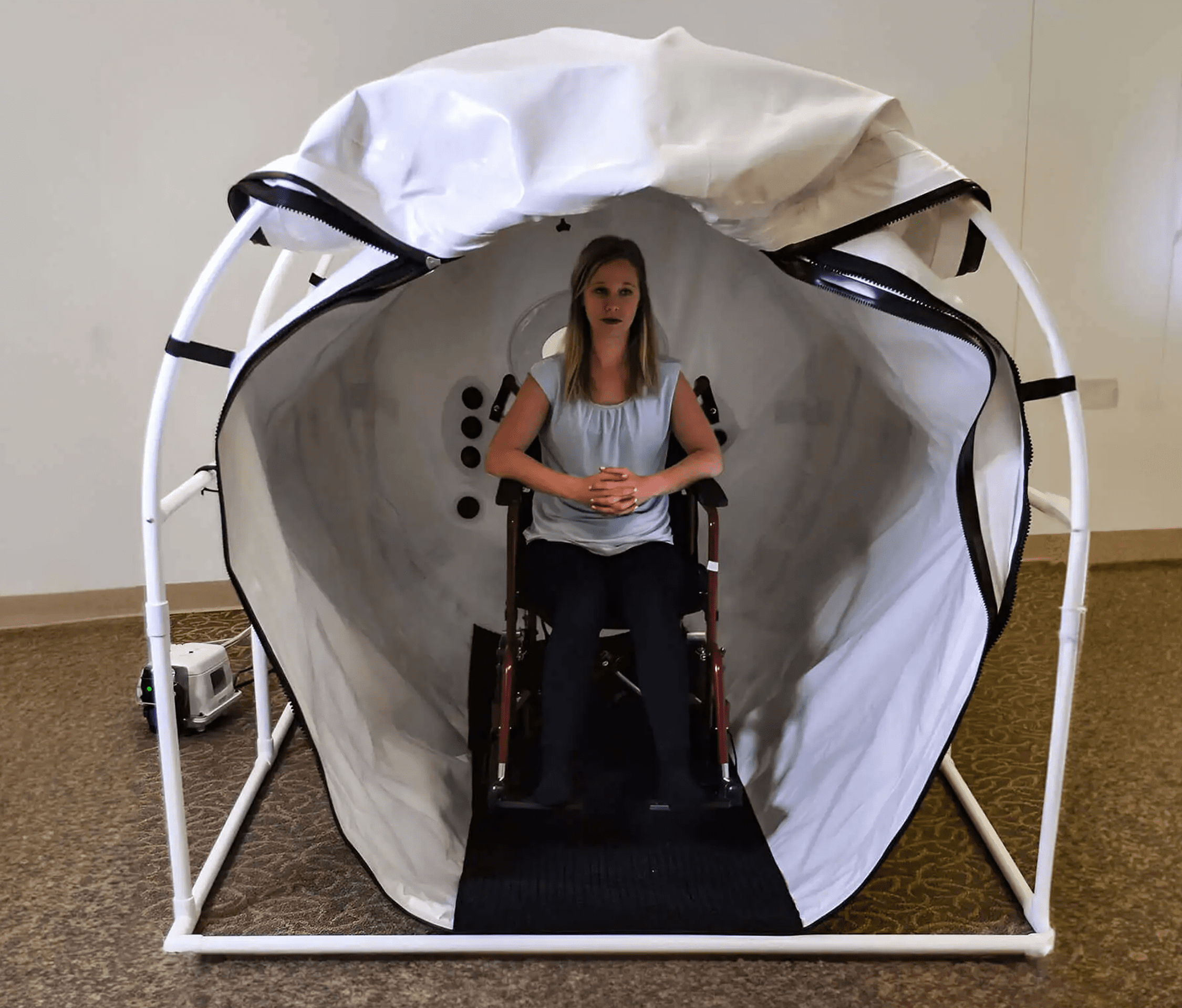 The largest wheelchair-accessible hyperbaric chamber on the market, the Grand Dive Pro Plus is spacious, versatile, and comfortably fits two people or a recliner chair.